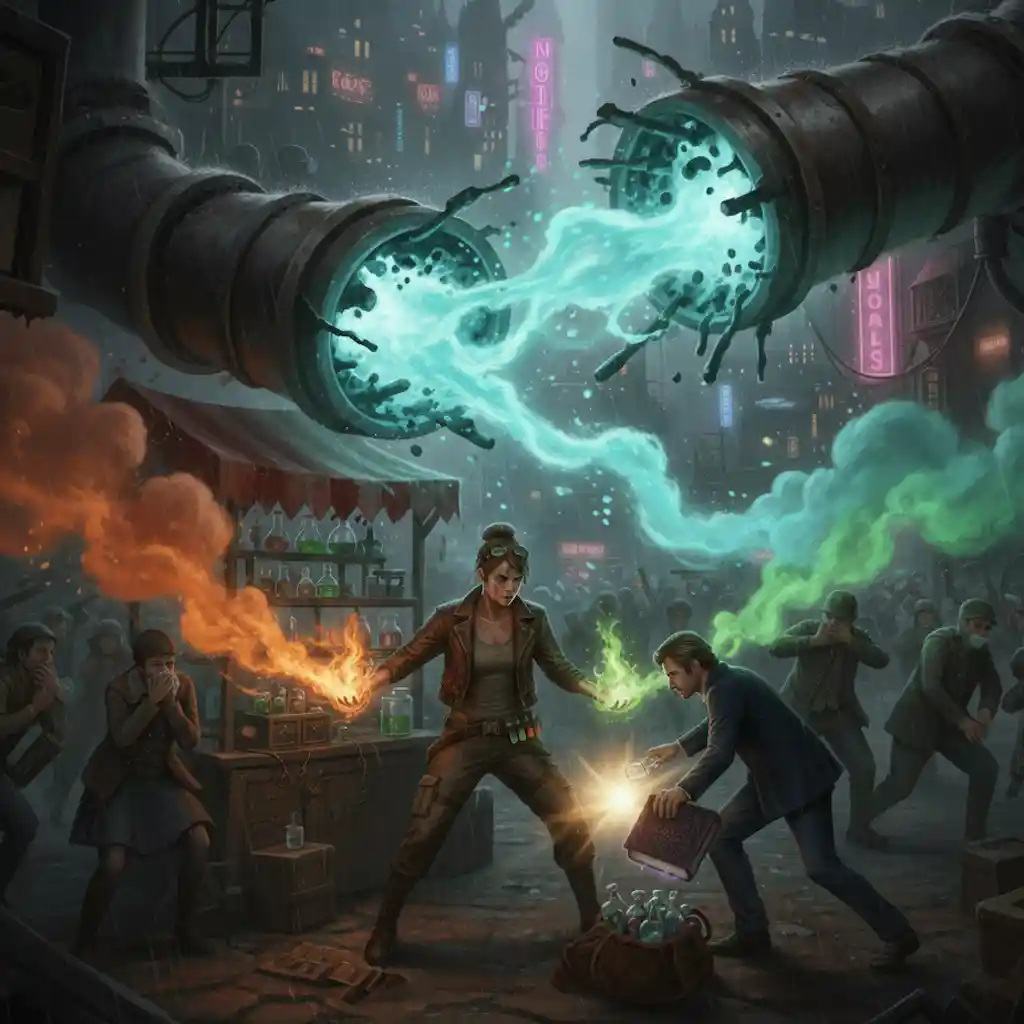 Trapped in the city's underbelly, a disgraced prince seeks a lifeline from a sharp-tongued alchemist. But when a catastrophic breach unleashes raw magic, their fragile truce is shattered, forcing them into a desperate, chaotic escape that leaves them with far more than they bargained for.