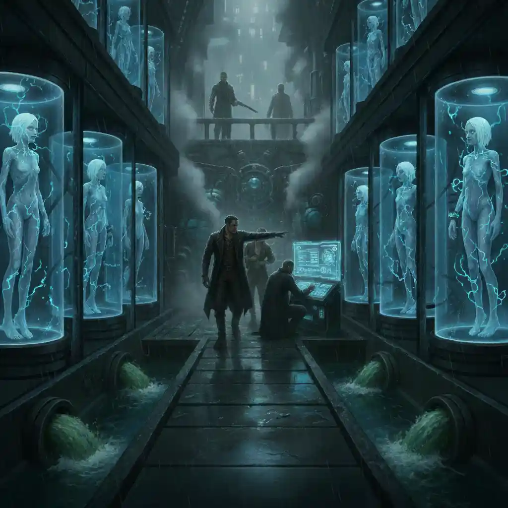 Trapped in the city's forgotten depths, Silas, Aris, and Kael face a relentless mechanical hunter. With time running out and a deadly secret weapon in play, one of them must make an unthinkable choice to ensure the survival of the others. But victory comes at a terrifying cost, transforming one into the very thing they fight against, with only a cryptic clue offering a sliver of hope.